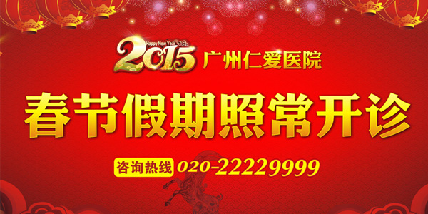 2015年的春节即将到来,作为全国首批无假日医院,春节期间,为确保每一位前来就诊的患者都能够得到高品质医疗服务,广州仁爱医院的医务工作者将在春节期间坚守在第一线,为广大市民的健康保驾护航,春节期间各科室照常开诊。